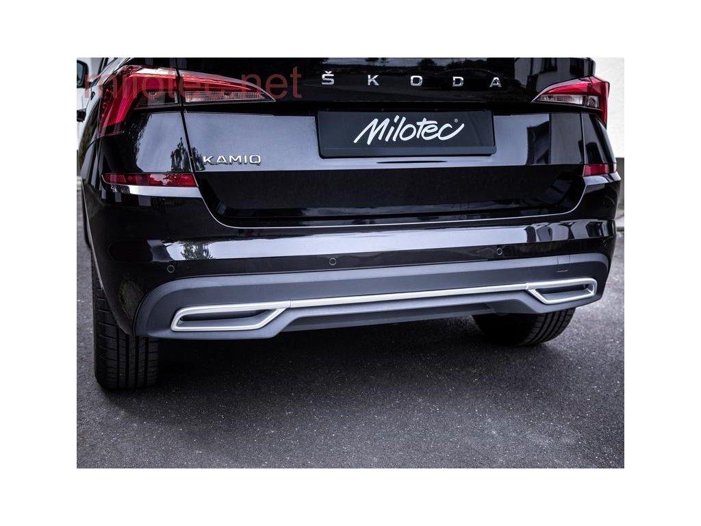 Dummy – koncovky výfuku s dekor lištou nárazníku, Alu Brush - Škoda Kamiq od r.v. 2019