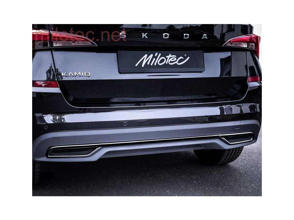 Dummy – koncovky výfuku s dekor lištou nárazníku, černý lesklý "klavírlak" - Škoda Kamiq od r.v. 2019