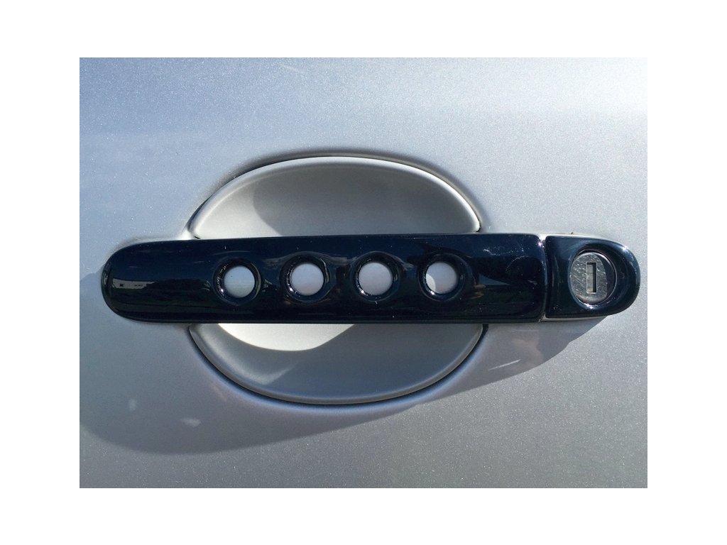 Kryty klik děrované, černý lesklý "klavírlak" (4+4 ks dva zámky) - Škoda Fabia I. Kryty klik pro Škoda Fabia I. / Škoda Fabia II. / Škoda Octavia I. / Škoda Octavia II. / Škoda Superb I.