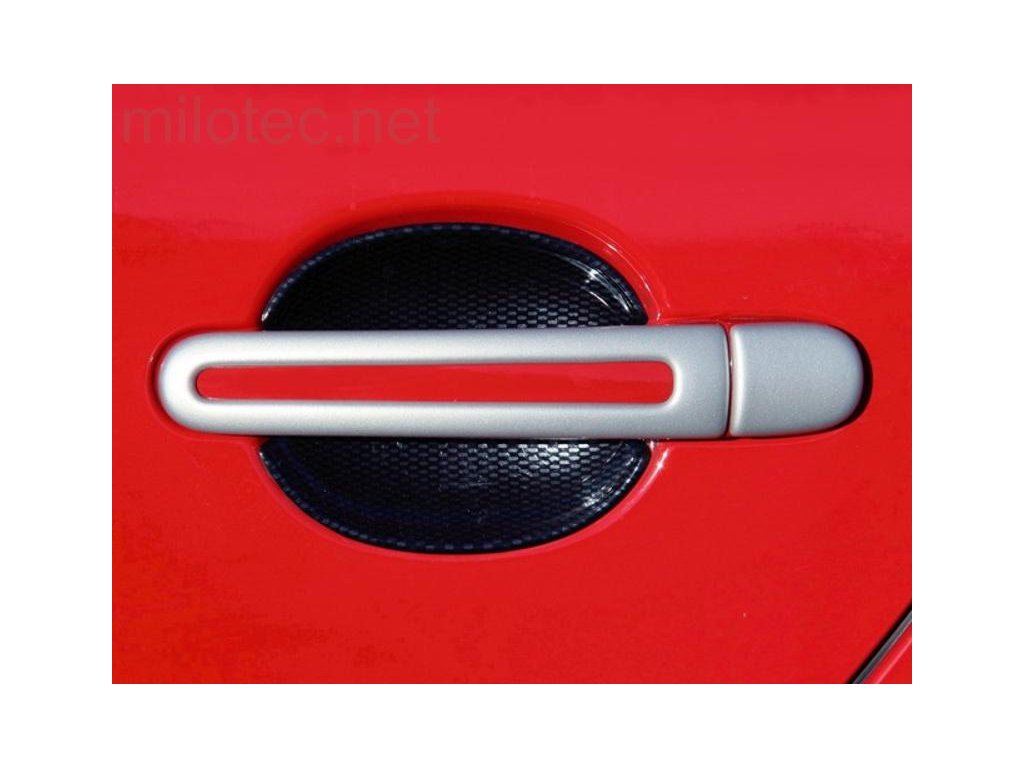 Kryty klik - oválný otvor, stříbrné matné (4+4ks dva zámky) - Škoda Superb I. Kryty klik pro Škoda Fabia I. / Fabia II. / Octavia I. / Octavia II. / Superb I.